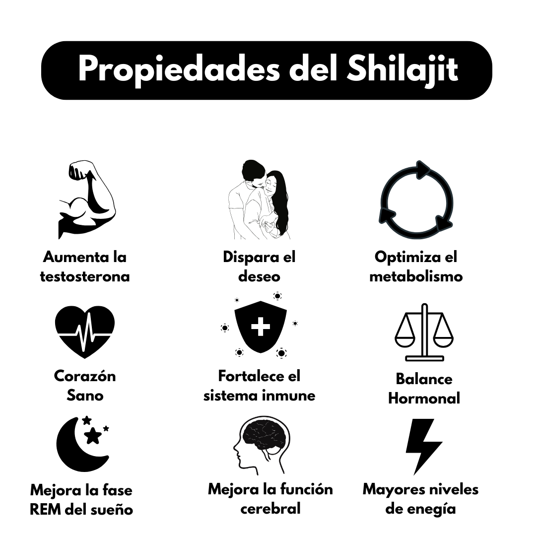En un ensayo clínico, participantes varones de 45 a 55 años, se dividieron en dos grupos: uno recibió una dosis diaria de 500mg de Shilajit, mientras que el otro recibió un placebo. Al cabo de 30 días quienes tomaron Shilajit purificado mostraron niveles significativamente mayores de testosterona.
